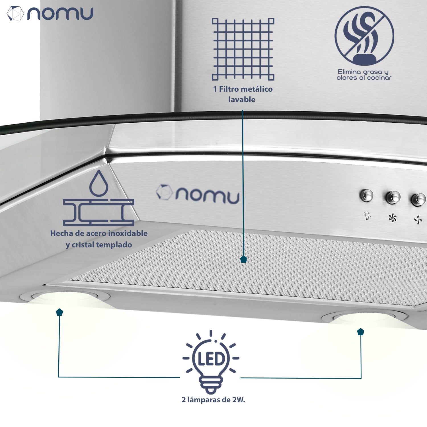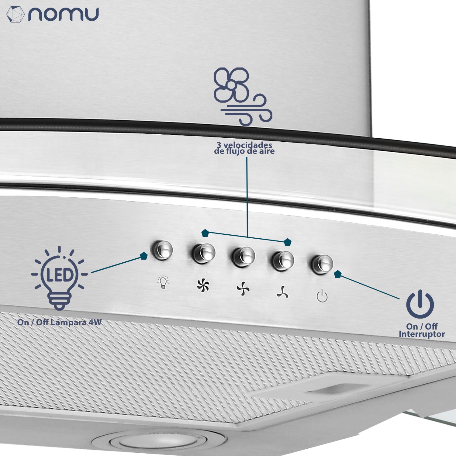 Campana de Extracción Vidrio Templado 76cm Acero Inoxidable NOMU