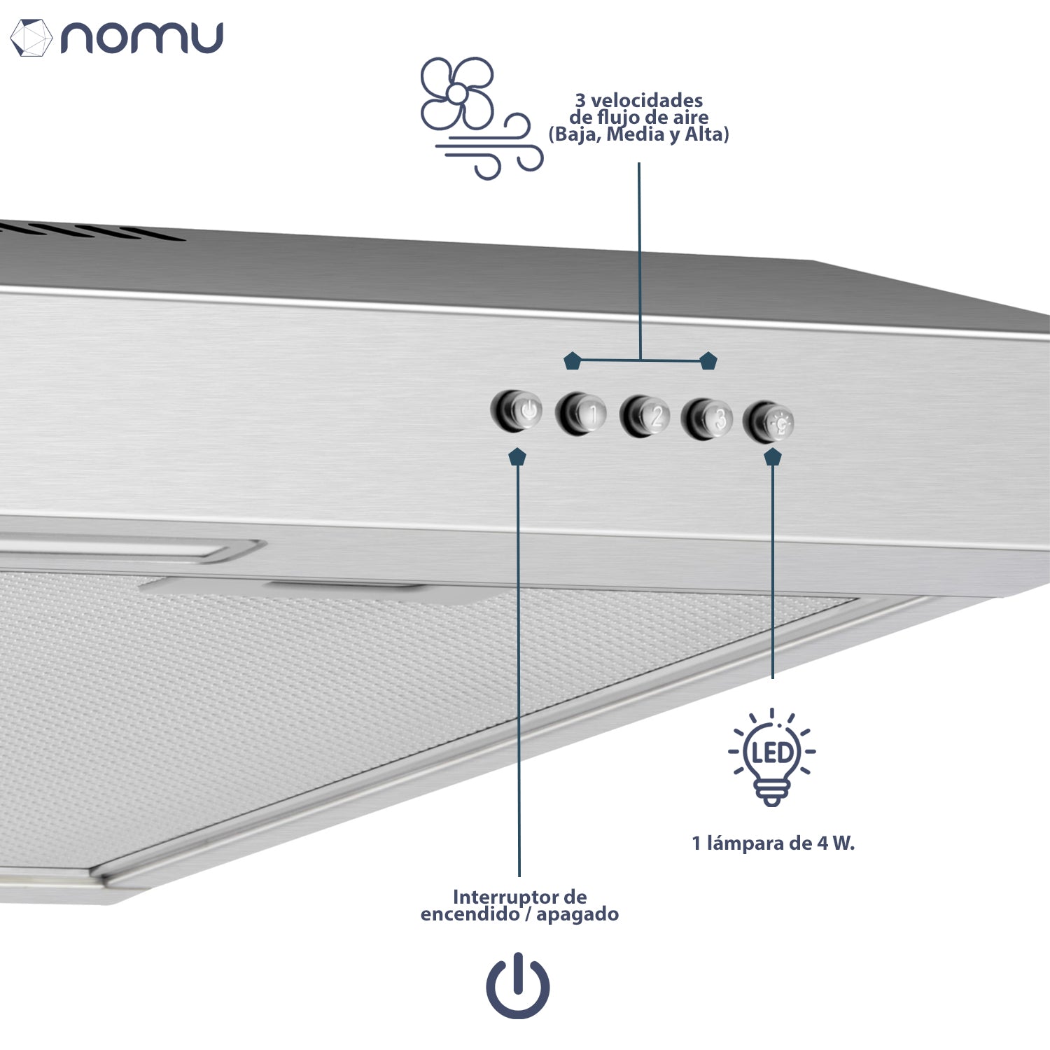 Campana Extractora Empotrable NOMU 60 cm, Acero Inoxidable