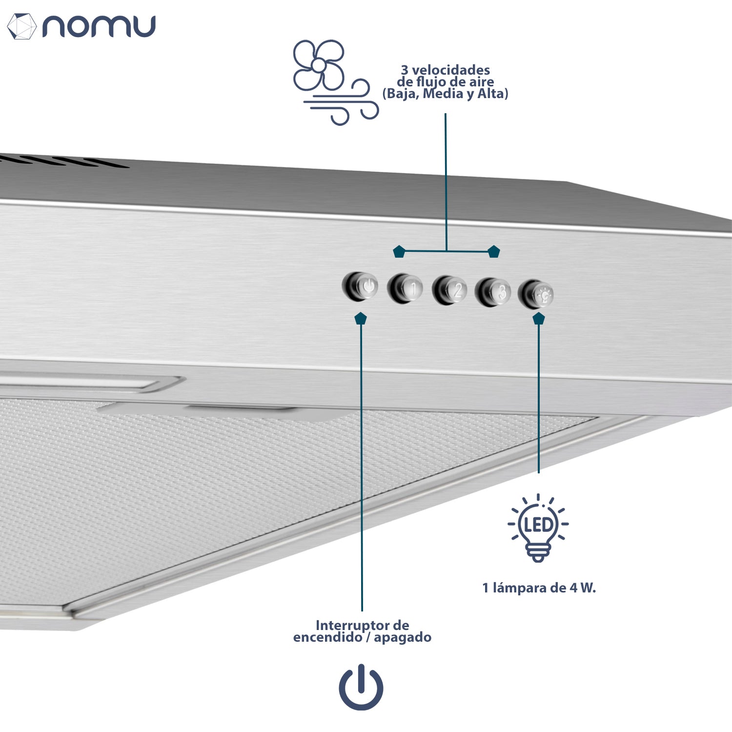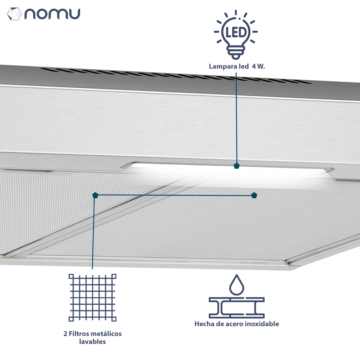 Campana Extractora Empotrable NOMU 76 cm, Acero Inoxidable